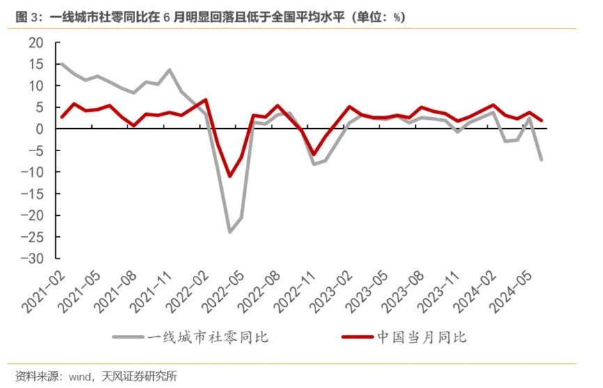 一线城市的社零增速不仅没能带动全国消费上行,反而成为中国消费的下拉项。