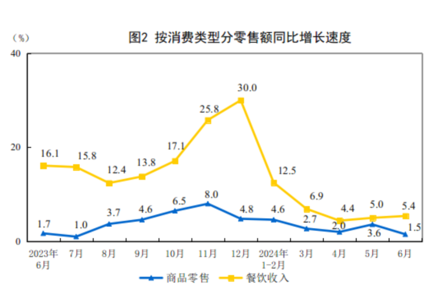 国家统计局公布的最新数据显示,2024年6月,商品零售额增速再创新低。